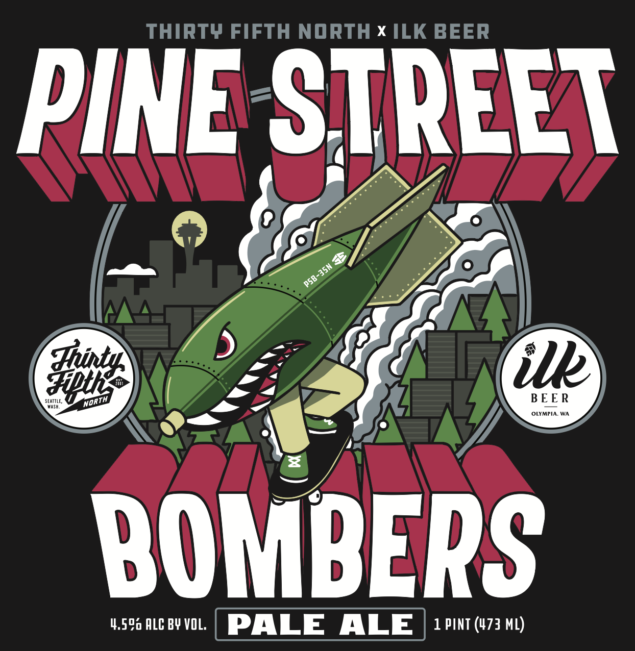 We made this piney, kinda clear, beer for our buddies at Thirty Fifth North skate shop in Seattle. The goal was a crusher hanging out and bombing the streets beer and we think we pretty much hit the spot! Brewed with pils, wheat and a touch of Vienna malt and hopped liberally with Centennial and Chinook, followed by more Centennial and Chinook and bigly amount of Eldorado in the dry hop! Piney but balanced with that touch of Eldo fruitiness.